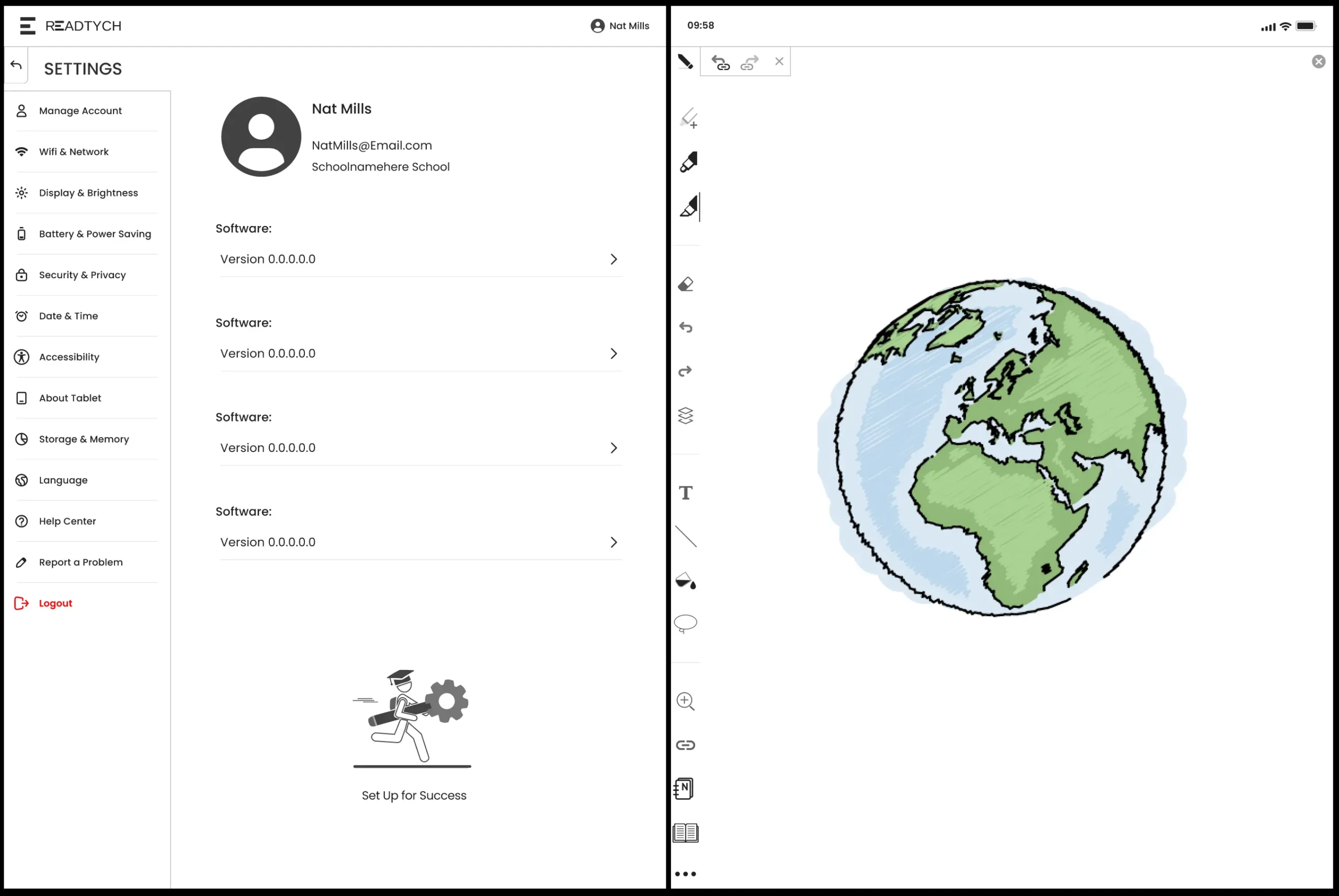 Students and teachers need calm, legible interfaces. E‑ink is unforgiving: low refresh rates, ghosting, and low color depth punish fancy UI tricks. The product needed discipline.